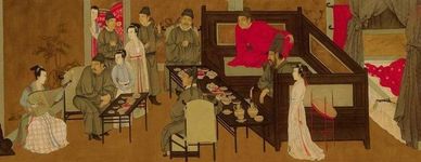 《韩熙载夜宴图》描绘了官员韩熙载家设夜宴载歌行乐的场面。此画绘写的就是一次完整的韩府夜宴过程,即琵琶演奏、观舞、宴间休息、清吹、欢送宾客五段场景。整幅作品线条遒劲流畅,工整精细,构图富有想象力。